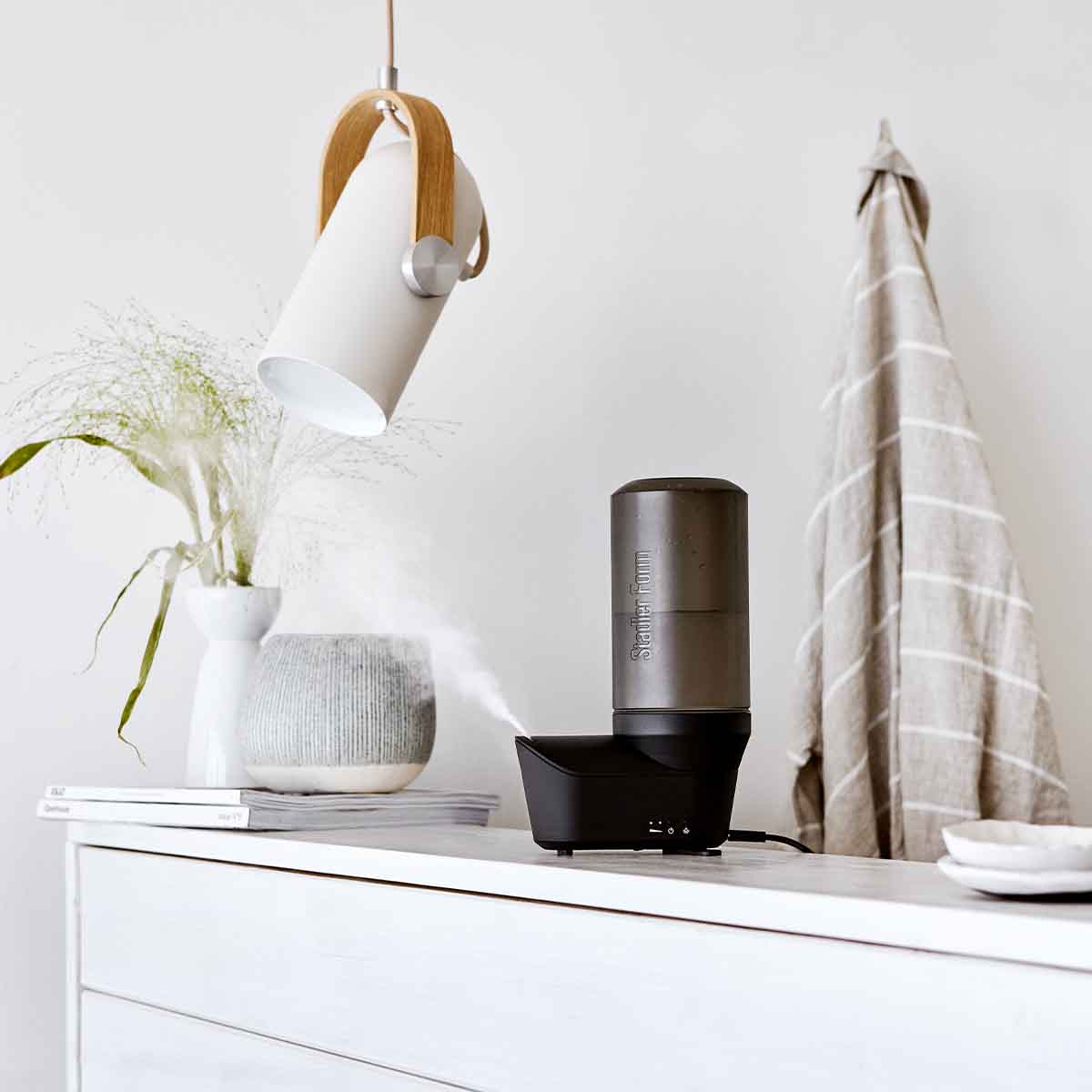 Mobilný zvlhčovač vzduchu Emma môžete používať v hotelovej izbe, na chate i doma. Vďaka USB káblu ho môžete pripojiť napríklad aj k power banke. Power banka s kapacitou 10 000 mAh zabezpečí prevádzku až 8 hodín. Súčasťou balenia je tiež adaptér pre pripojenie do zásuvky.