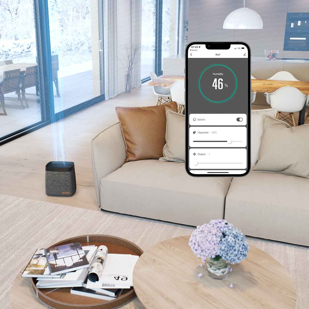 Extra výkonný zvlhčovač vzduchu Karl dostane do vzduchu až 690 g vody za hodinu. Technológia Adaptive HumidityTM zvlhčuje veľmi účinne, ale zároveň úsporne a potichu. Ovládajte všetky funkcie zvlhčovača pomocou aplikácie a majte kontrolu nad vlhkosťou vzduchu v miestnostiach s rozlohou až do 100 m2. Vďaka unikátnemu dizajnu budete chcieť, aby sa Karl stal súčasťou vášho domova.