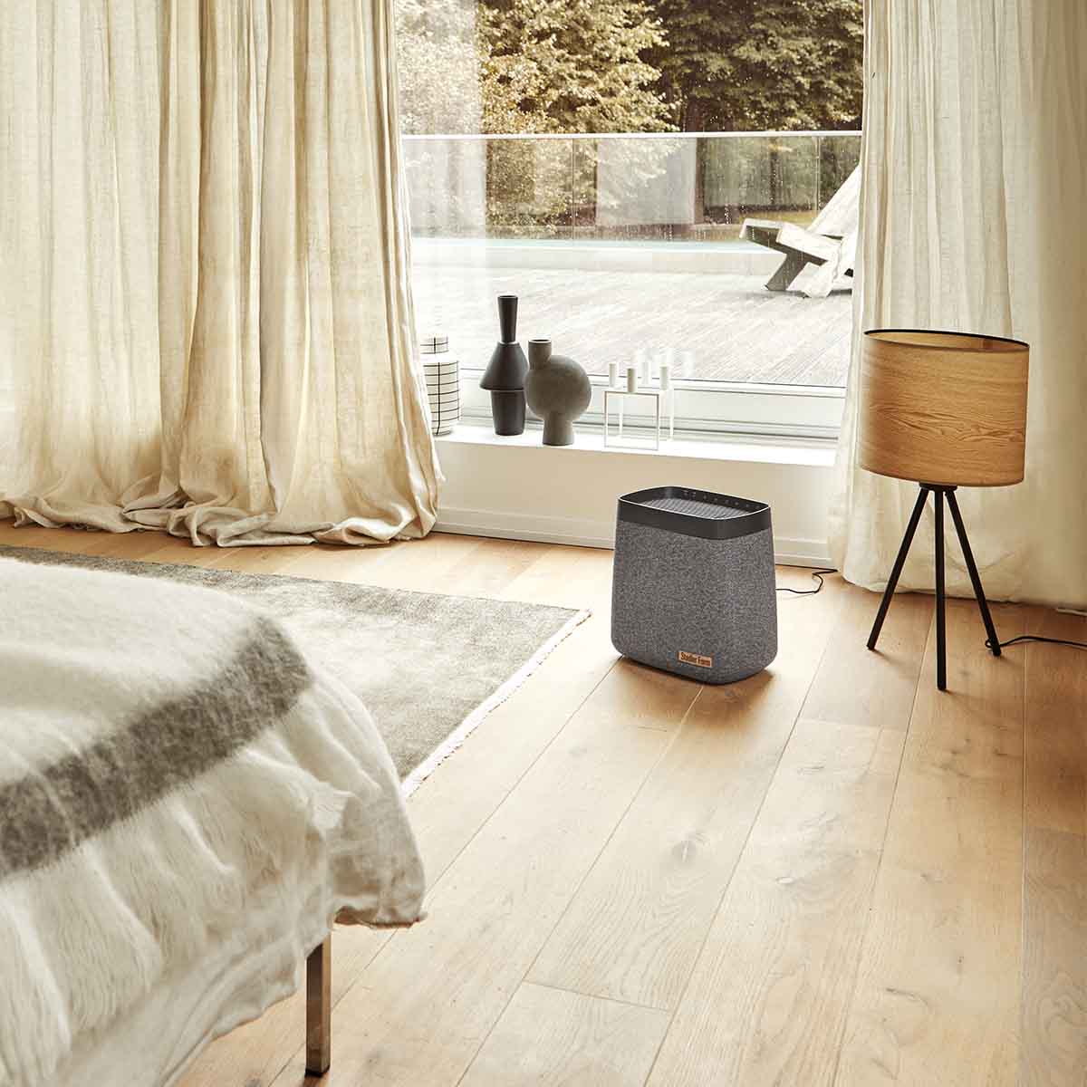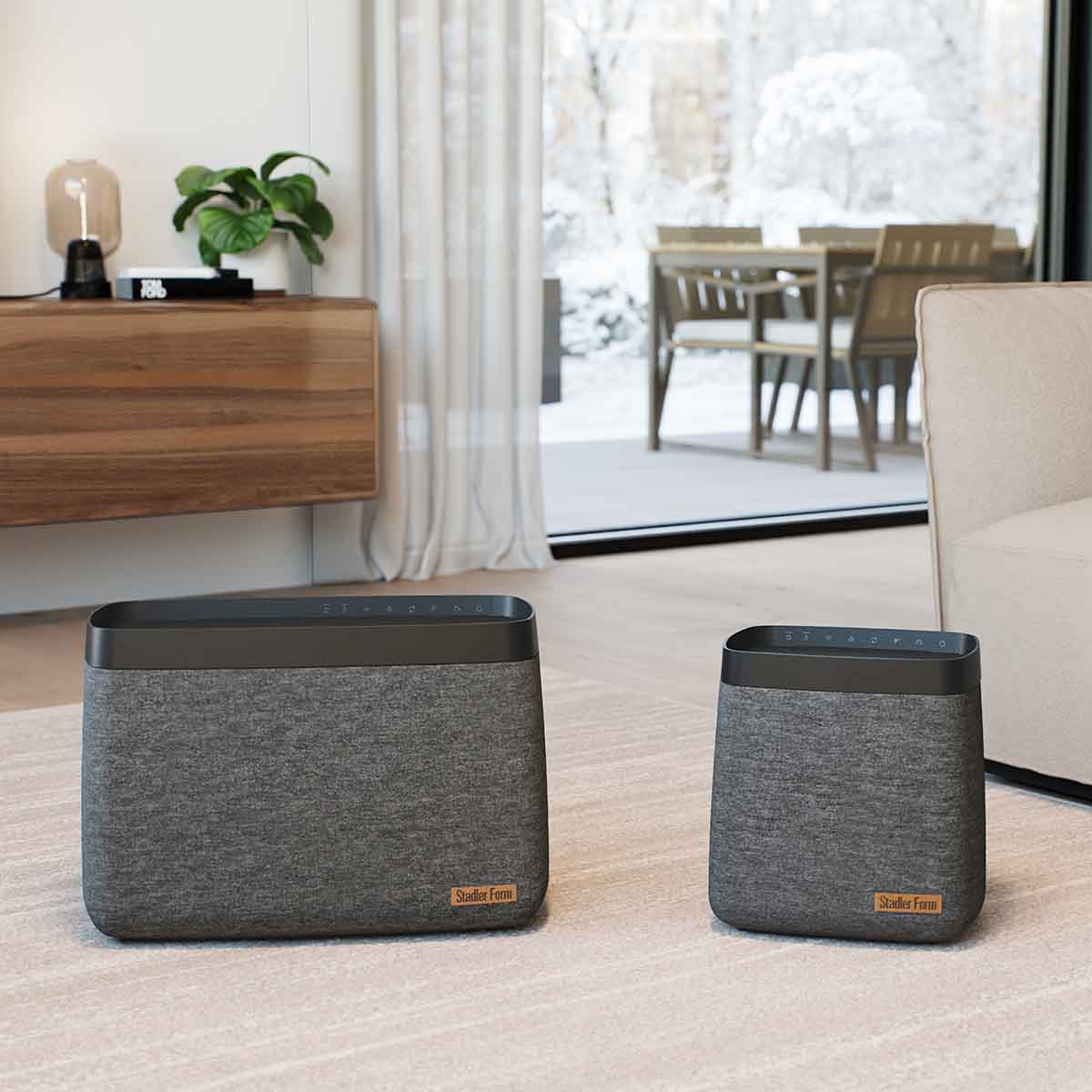 Neprehliadnuteľný, elegantný, prémiový. Taký je dizajn zvlhčovača vzduchu Karl. Upúta vás šedým textilným povrchom a jemným zobrazením loga Stadler Form na hnedej koži. Ovládacie prvky a LED indikátory sú skryté vo vnútornej časti horného panela. Nerušia tak unikátny dizajn zvlhčovača vzduchu Karl.
