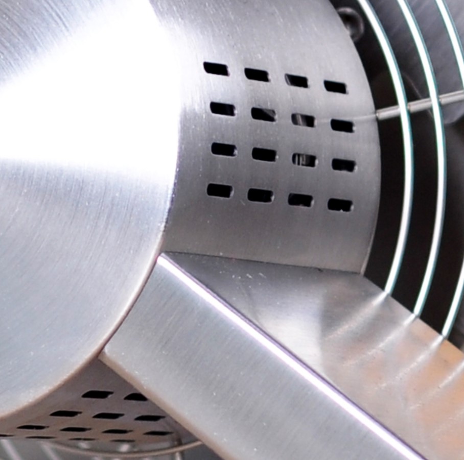 Ventilátor Q v masívnom kovovom prevedení z ušľachtilej ocele a hliníka bol vytvorený s dôrazom na detail. Dizajnéri pri jeho návrhu nepoužili lacné plastové časti, ktoré sú náchylné na poškodenie. Vďaka kvalitným materiálom je ventilátor veľmi pevný a stane sa súčasťou vášho domova na dlhý čas.