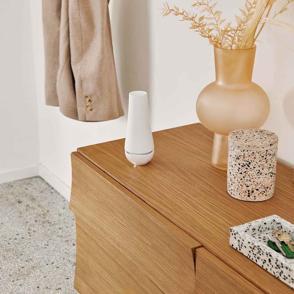 Unikátny systém Fragrance Globe používa na rozptyľovanie arómy magické vonné gule. Do difuzéra vložte vonnú guľu a o šírenie arómy sa postará zabudovaný ventilátor. Vonný difuzér Tina si jednoducho preneste z kúpeľne do obývačky bez rizika vyliatia vody či esenciálneho oleja.